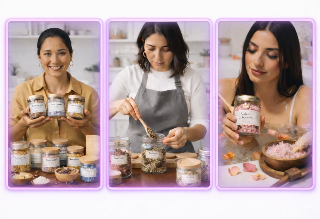 Descubre cómo elegir, combinar y equilibrar fragancias, colores y elementos visuales para crear sales de baño realmente irresistibles. Una guía clara que te ayuda a diseñar productos hermosos, coherentes y altamente vendibles.